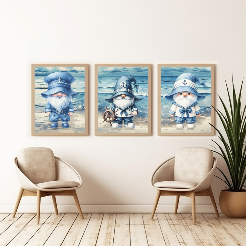 Transform your nursery into a whimsical underwater wonderland with our enchanting set of 3 nautical gnome wall art prints. Each piece features delightful gnome characters immersed in a sea of vibrant colors and playful designs, perfect for sparking your child's imagination. These affordable prints not only enhance the beauty of your space but are also fully scalable to fit standard printing sizes, ensuring a perfect fit for any wall. For the best results, we recommend using high-quality linen paper to bring out the intricate details and textures of each artwork.